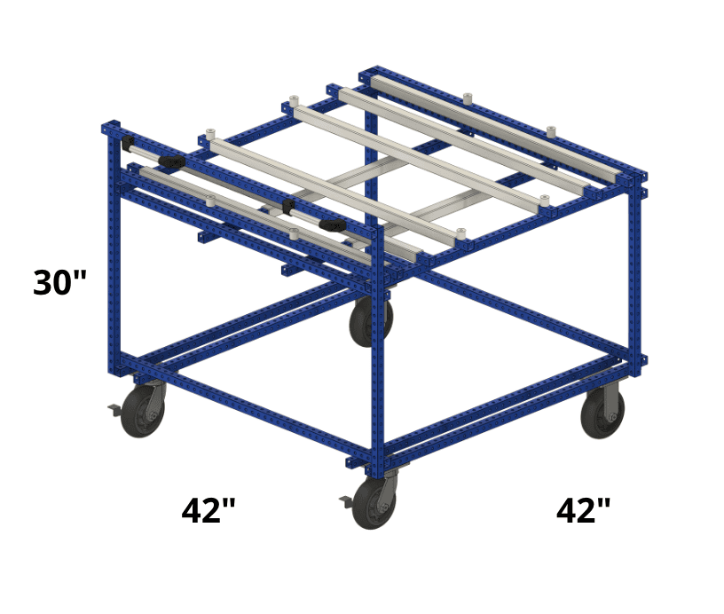 Stores parts in a horizontal orientation for to protect the parts from damage, and provide easy accessibility. Enhances efficiency and organization in the production environment.