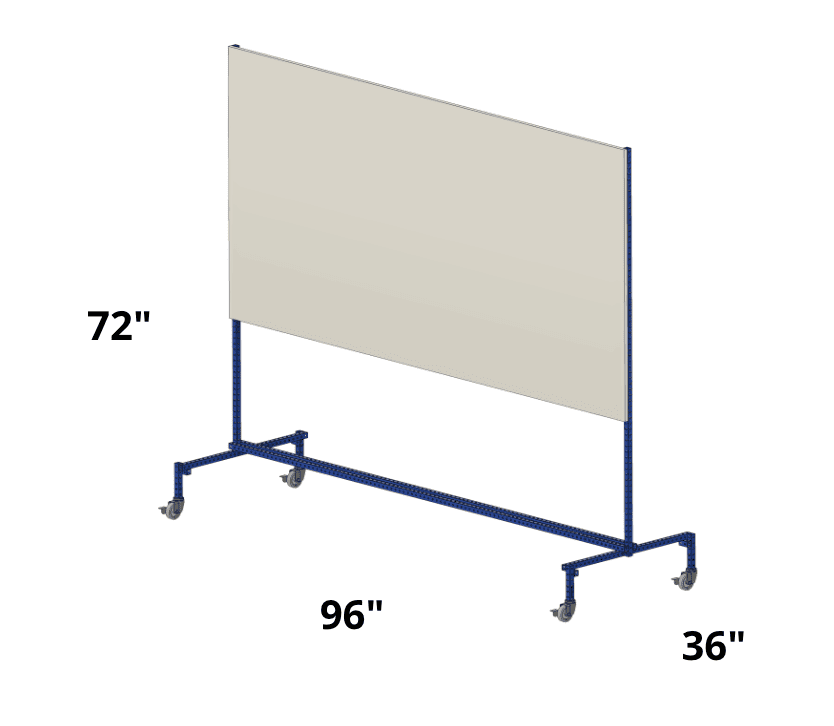 A mobile dry erase whiteboard designed to facilitate communication and collaboration by providing a portable writing surface that can be easily moved throughout the facility.