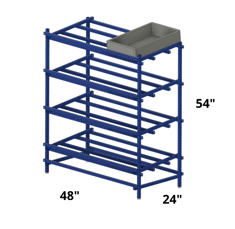 A static angled shelf rack designed to store items on shelves that are angled for better visibility and easier access, enhancing the efficiency of picking processes.