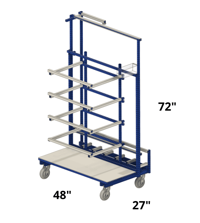 A closure panel cart designed to transport and store closure panels, featuring specialized racks or slots that secure the panels during movement. Shown to illustrate that specific, highly customized solutions can be innovated!